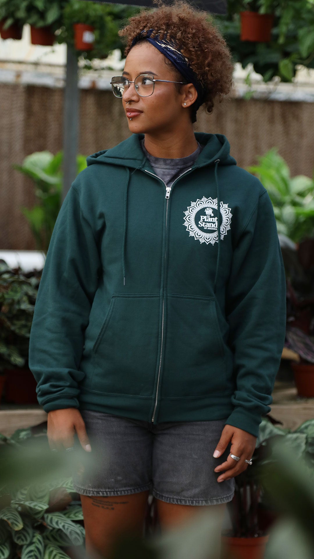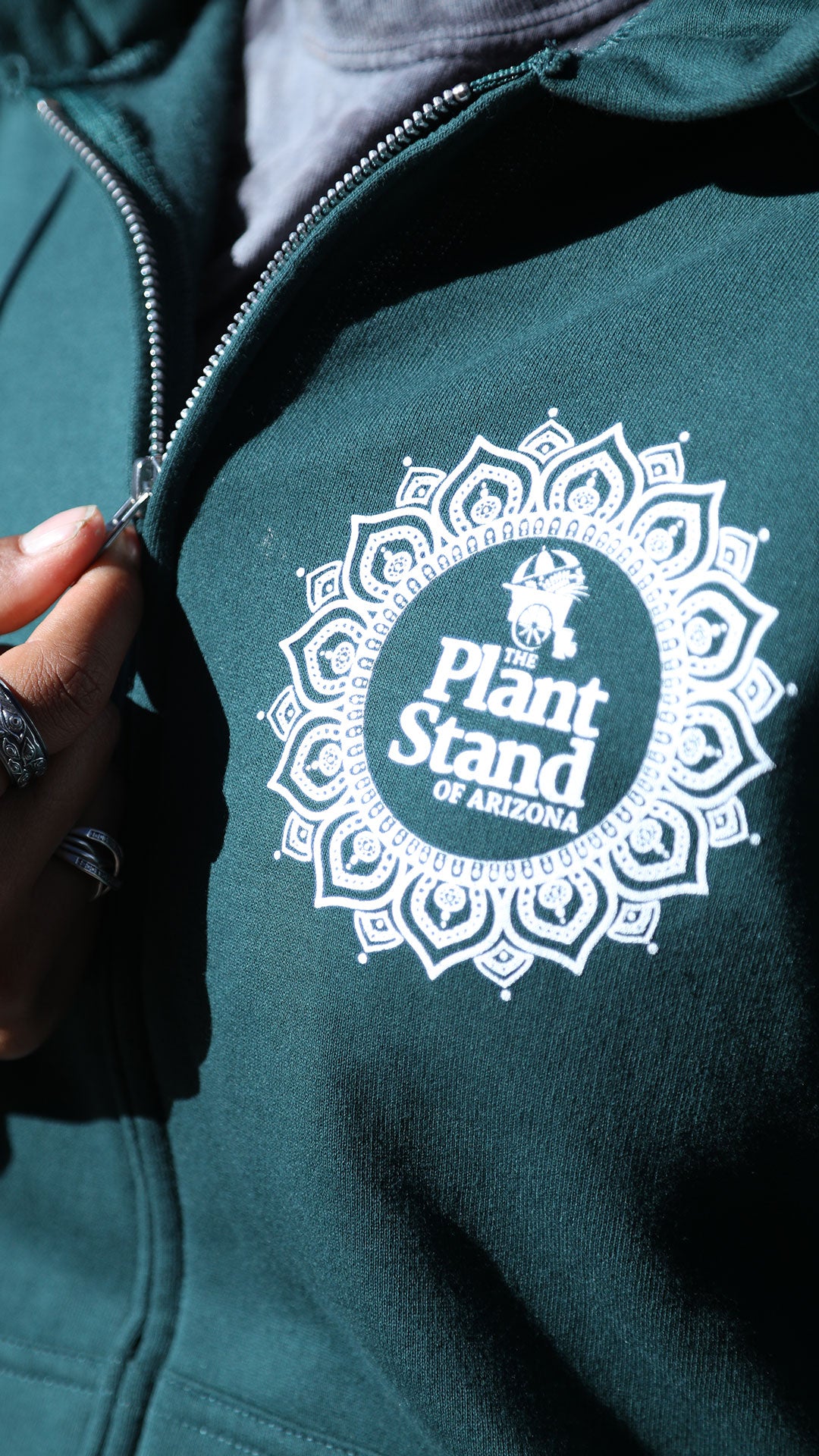 Plant Stand Mandala Zip-Up Hoodie – Forest Green