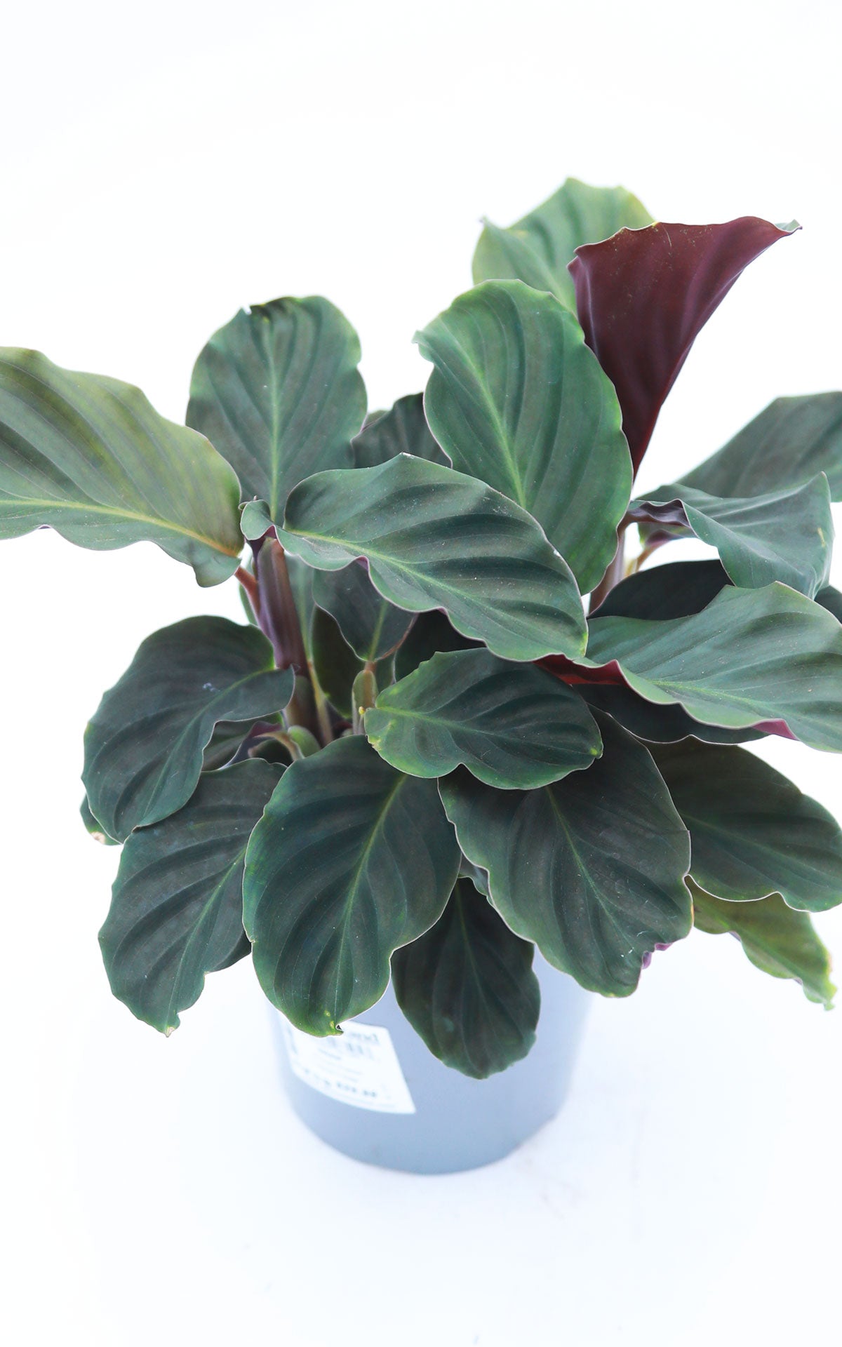 Like other Calatheas, ‘Eternal Flame’ brings movement and life to your space — its leaves gently shift throughout the day in response to light. Perfect for plant lovers who enjoy rich color and texture, this variety thrives indoors with consistent care and a bit of extra humidity.