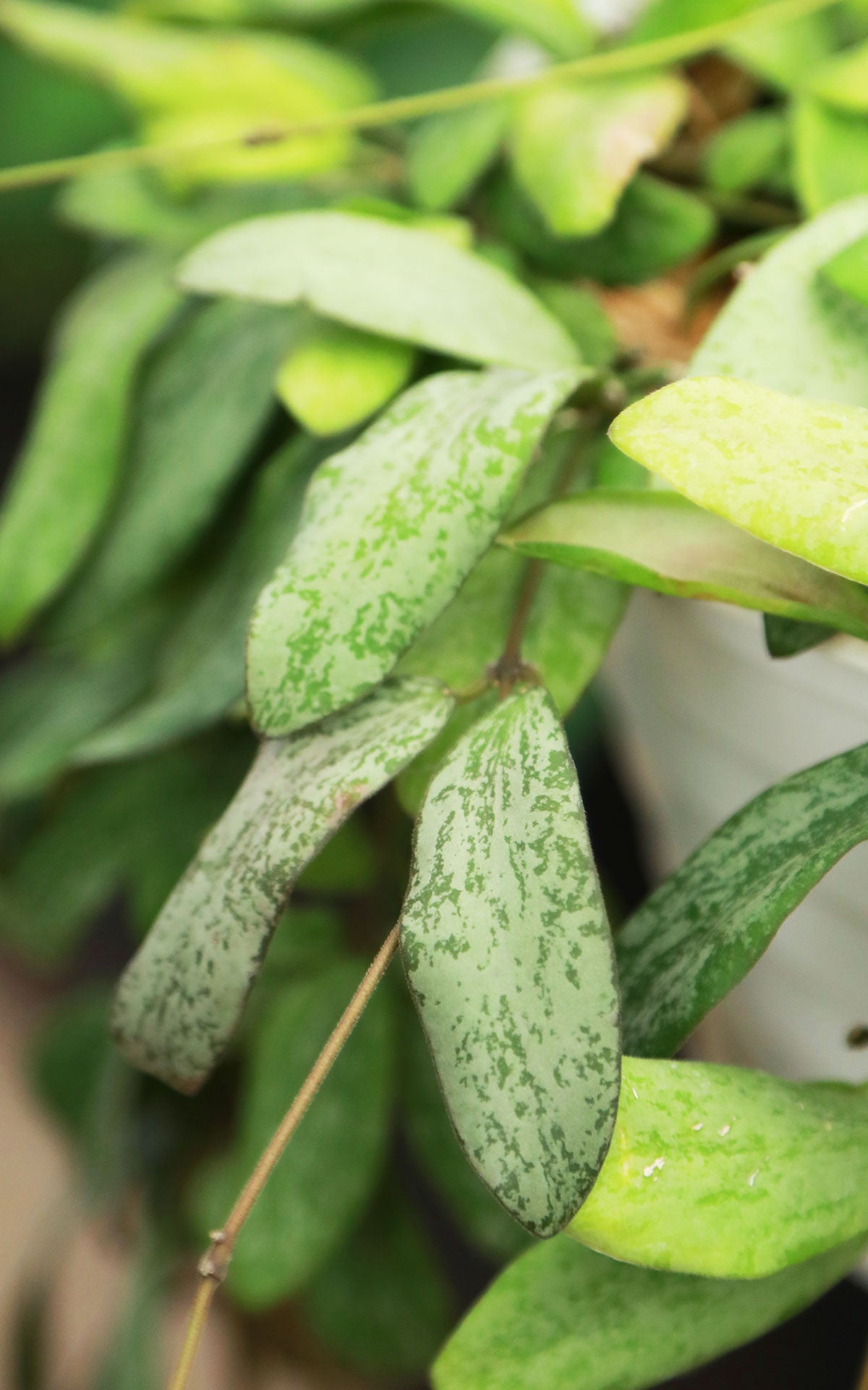 This variety thrives indoors in bright, indirect light and benefits from higher light levels to bring out its darker coloration. Allow the soil to dry slightly between waterings, as Hoya Sigillatis prefers a well-draining mix and does not like to sit in moisture. It’s well suited for hanging baskets or trellises, where its cascading growth habit can really shine.