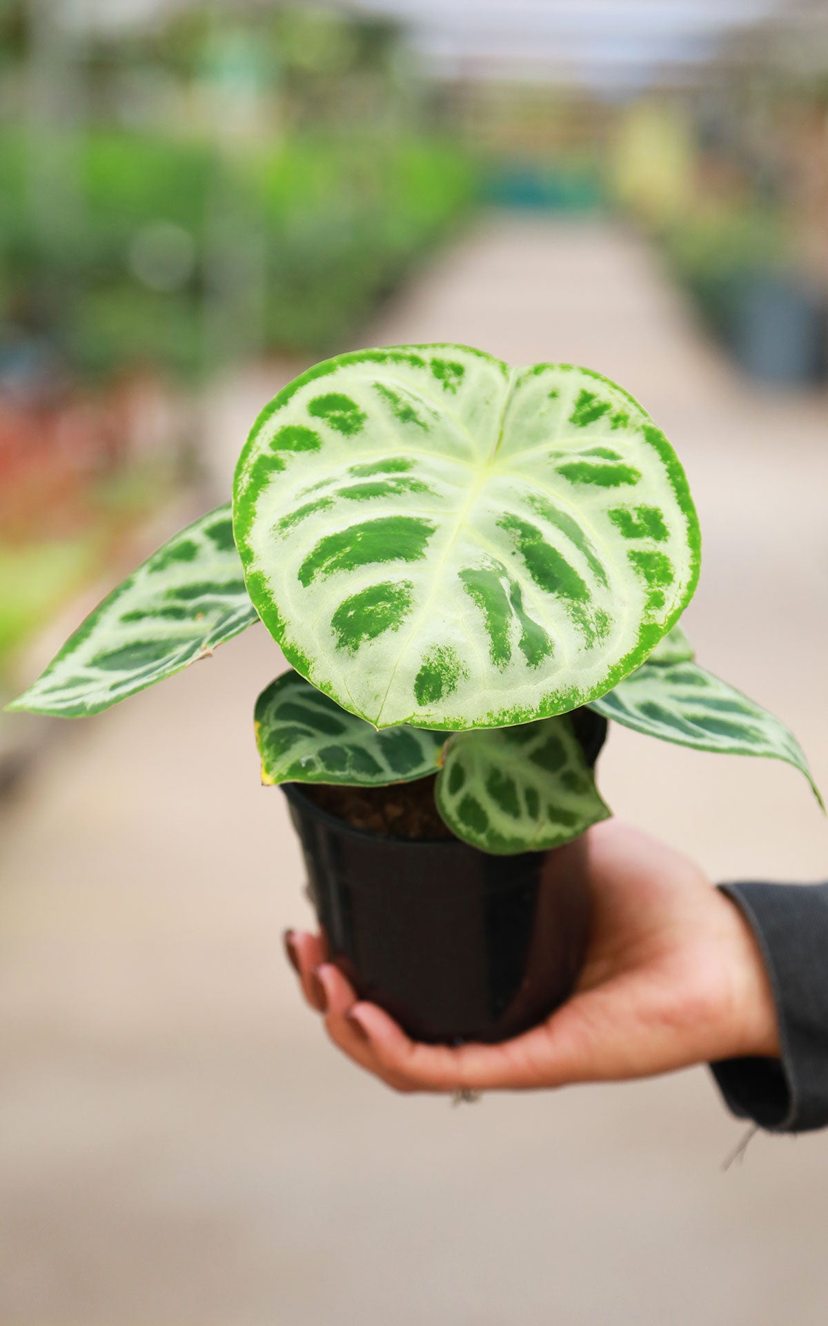 The Anthurium Dorayaki Crystallinum is a rare, collector-grade aroid admired for its thick, rounded, heart-shaped leaves and striking silver-white veining set against deep, velvety green foliage. Compact yet luxurious, this cultivar delivers high-impact texture and an elevated tropical look—perfect for curated indoor collections and modern interiors.