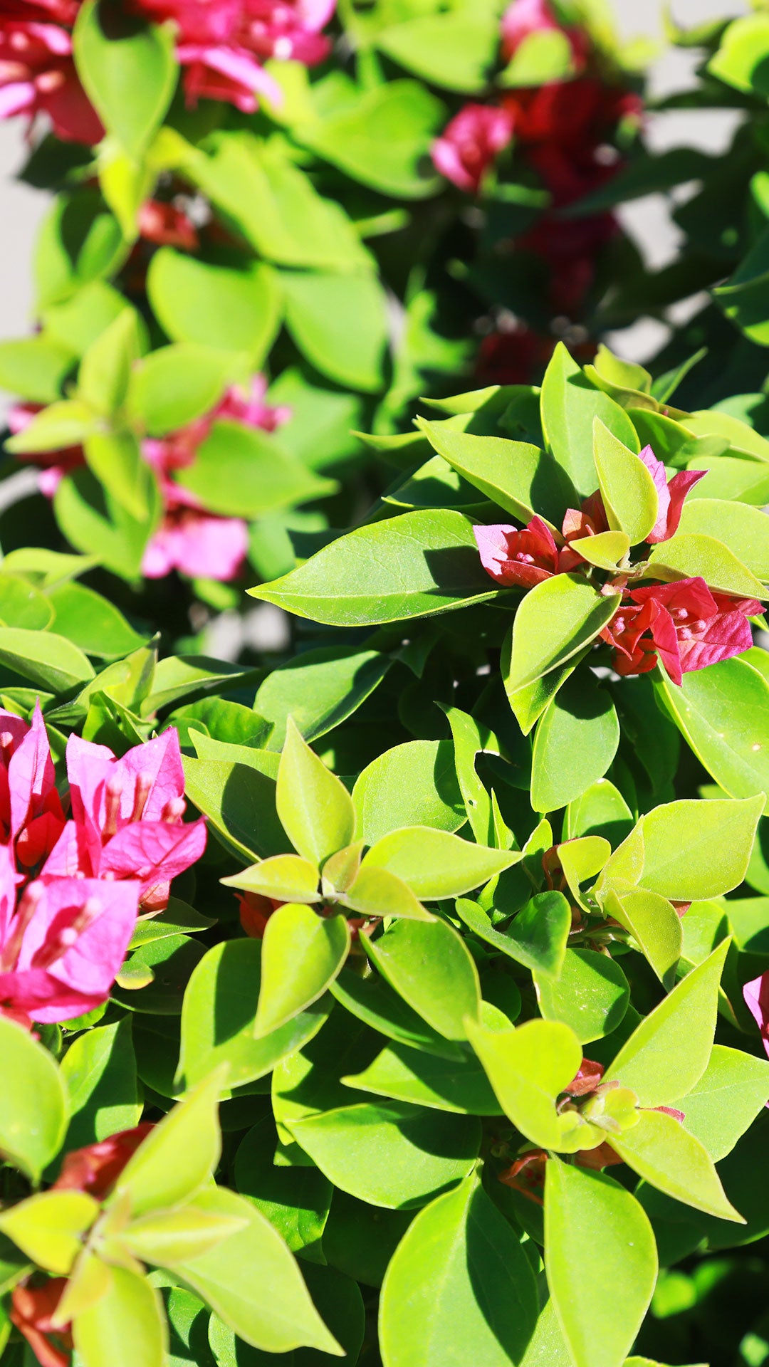 A vibrant, upright-growing variety with brilliant magenta-pink blooms that light up the landscape! ‘Torch Glow’ has thick, sculptural stems and clusters of colorful bracts that bloom almost year-round in warm climates. Its compact, bushy form makes it perfect for borders, hedges, or patio containers — all the tropical color without the sprawl.